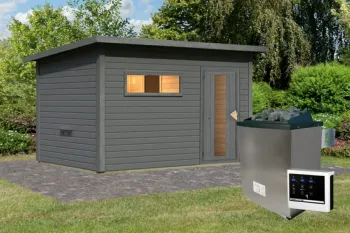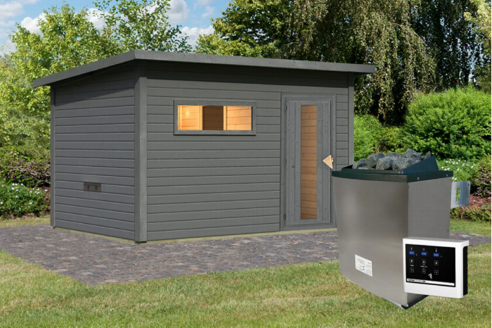 Karibu | Hytti 6 Buitensauna | Terragrijs | Kachel 9 kW Externe Bediening