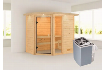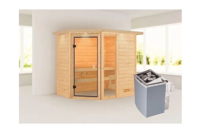 De Jada sauna is een compacte sauna met een hoekmodel vormgeving. De sauna heeft diverse mogelijkheden qua deur- en kacheltype en kan gespiegeld opgebouwd worden. Met een 8mm bronzeglas deur. De sauna is uitgevoerd met een dakkraag, waarin verlichting geïntegreerd is. Daarnaast wordt de sauna verkocht inclusief: 1 x bank hoog: 57 cm, 1 x bank laag 27 cm en kachelrek. Exclusief: Licht, vloer, vloerrooster en Classic hoofdsteun. Als u de sauna volledig wilt personaliseren, kunt u een kijkje komen nemen bij Fonteyn. Hier kunt u samen met een adviseur de perfecte sauna samenstellen.