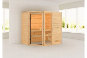 De Jada sauna is een compacte sauna met een hoekmodel vormgeving. De sauna heeft diverse mogelijkheden qua deur- en kacheltype en kan gespiegeld opgebouwd worden. Met een 8mm bronzeglas deur. De sauna wordt verkocht inclusief: 1 x bank hoog: 57 cm, 1 x bank laag 27 cm en kachelrek. Exclusief: Kachel, licht, vloer, vloerrooster en Classic hoofdsteun. Als u de sauna volledig wilt personaliseren, kunt u een kijkje komen nemen bij Fonteyn. Hier kunt u samen met een adviseur de perfecte sauna samenstellen.