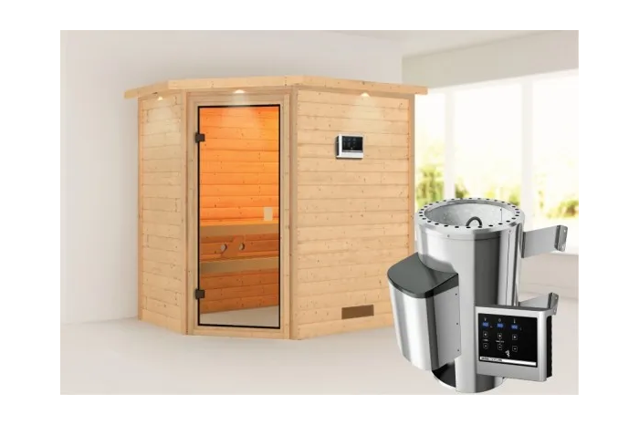 Karibu | Jella Sauna met Dakkraag | Kachel 3,6 kW Externe Bediening