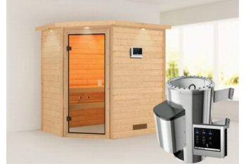 De Jella sauna is een compacte sauna met een hoekmodel vormgeving. De sauna heeft diverse mogelijkheden qua deur- en kacheltype en kan gespiegeld opgebouwd worden. Met een 8mm bronzeglas deur. De sauna is uitgevoerd met een dakkraag, waarin verlichting geïntegreerd is. Daarnaast wordt de sauna verkocht inclusief: 1 x bank hoog: 57 cm, 1 x bank laag: 27 cm en kachelrek. Exclusief: Licht, vloer, vloerrooster en Classic hoofdsteun. Als u de sauna volledig wilt personaliseren, kunt u een kijkje komen nemen bij Fonteyn. Hier kunt u samen met een adviseur de perfecte sauna samenstellen.