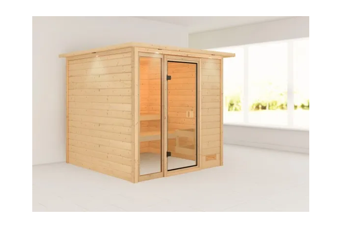 De Jutta sauna is een compacte sauna met een rechthoekige vormgeving. De sauna heeft diverse mogelijkheden qua deur- en kacheltype en kan gespiegeld opgebouwd worden. Met een 8mm bronzeglas deur. De sauna is uitgevoerd met een dakkraag, waarin verlichting geïntegreerd is. Daarnaast wordt de sauna verkocht inclusief: 2 x bank hoog 57 cm en kachelrek. Exclusief: Kachel, licht, vloer, vloerrooster en Classic hoofdsteun. Als u de sauna volledig wilt personaliseren, kunt u een kijkje komen nemen bij Fonteyn. Hier kunt u samen met een adviseur de perfecte sauna samenstellen.