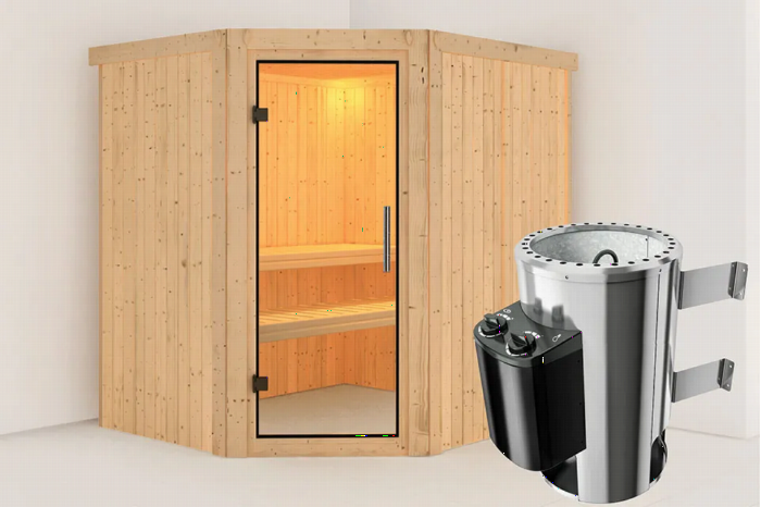 Karibu | Lilja Sauna | Helderglas Deur | Kachel 3,6 kW Geïntegreerde Bediening