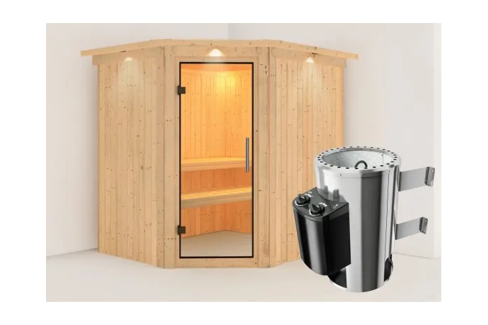 Karibu | Lilja Sauna met Dakkraag | Helderglas Deur | Kachel 3,6 kW Geïntegreerde Bediening