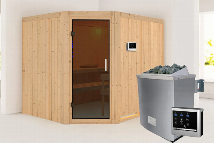 Introductie Malin Sauna van KaribunErvaar de unieke Malin Sauna van Karibu van Fonteyn, een prachtig hoekmodel dat elke ruimte verrijkt. Met diverse mogelijkheden qua deur- en kacheltype en de optie voor een gespiegelde opbouw, biedt deze sauna een persoonlijke wellness-ervaring. Het is een typische Finse sauna, gekenmerkt door het gebruik van een oven met stenen die extra vocht kunnen absorberen voor stoomafgifte.nnDe uitstraling van de Malin Sauna van KaribunDeze sauna straalt rust en ontspanning uit. Hoogwaardige materialen en een strak design zorgen voor een luxe en moderne uitstraling. De antracietglas deur voegt elegantie toe, waardoor deze sauna een echte blikvanger is.nnFunctionaliteit van de Malin Sauna van KaribunBehalve mooi is de Malin Sauna van Karibu ook zeer functioneel. De sauna wordt geleverd inclusief twee hoge banken, een lage bank, een kachelrek en een Classic hoofdsteun. Hierdoor kunt u optimaal genieten van uw saunasessies. Bovendien kunt u de sauna volledig personaliseren om aan uw specifieke behoeften te voldoen.nnGemak van de Malin Sauna van KaribunDe Malin Sauna van Karibu is ontworpen met het oog op gebruiksgemak. De sauna is eenvoudig te installeren en te onderhouden. Bovendien is de sauna zo ontworpen dat hij gemakkelijk in elke hoek van uw ruimte past, waardoor u optimaal gebruik kunt maken van uw beschikbare ruimte.nnEconomisch slimme keuzenDe Malin Sauna van Karibu is een investering in uw gezondheid en welzijn. Het regelmatig gebruik van een sauna kan bijdragen aan een betere gezondheid en een verhoogd gevoel van welzijn. Bovendien is de sauna gemaakt van duurzame materialen, waardoor hij jarenlang meegaat zonder aan kwaliteit in te boeten.nnZekerheid van de Malin Sauna van KaribunMet de Malin Sauna van Karibu van Fonteyn bent u verzekerd van een product van hoge kwaliteit dat lang meegaat. De sauna is gemaakt van duurzame materialen en is ontworpen om jarenlang optimaal te presteren.nnShowroom in UddelnBezoek de showroom in Uddel, de grootste sauna (https://www.fonteyn.nl/sauna-s/finse-sauna-s) showroom in Europa, om de Malin Sauna van Karibu van Fonteyn zelf te ervaren. intern opgeleide experts staan klaar om te adviseren en te helpen bij het samenstellen van de perfecte sauna. Met een breed assortiment, grote voorraad en snelle levering, is het mogelijk om snel te genieten van de nieuwe sauna. Bent u al overtuigd? Dan kunt u de Malin Sauna van Karibu direct bestellen via de webshop.n
