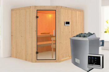 Karibu | Malin Sauna | Helderglas Deur | Kachel 9 kW Externe Bediening