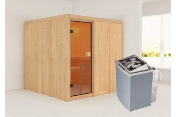 De Oulu sauna is een compacte sauna met een vierkante vormgeving. De sauna heeft diverse mogelijkheden qua deur- en kacheltype en kan gespiegeld opgebouwd worden. Met een 8mm bronzeglas deur. De sauna wordt verkocht inclusief: 2 x bank hoog: 55 cm, 1 x bank laag: 50 cm en kachelrek. Exclusief: Licht, vloer, vloerrooster en Classic hoofdsteun. Als u de sauna volledig wilt personaliseren, kunt u een kijkje komen nemen bij Fonteyn. Hier kunt u samen met een adviseur de perfecte sauna samenstellen.