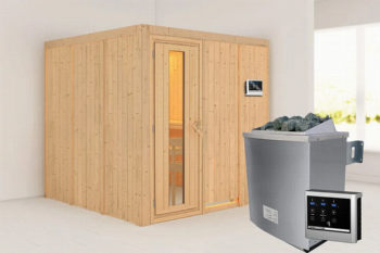 Karibu | Rodin Sauna | Energiesparende Deur | Biokachel 9 kW Externe Bediening
