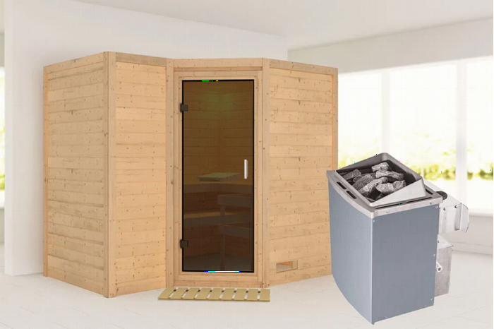 Karibu | Sahib 2 Sauna | Antracietglas | Kachel 9 kW Externe Bediening