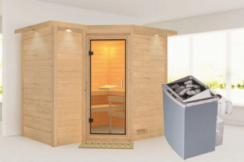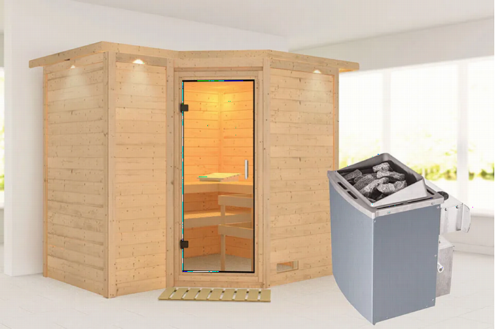Karibu | Sahib 2 Sauna met Dakkraag | Helderglas Deur | Kachel 9 kW Geïntegreerde Bediening