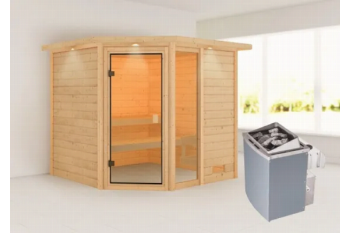 Karibu | Tabea Sauna met Dakkraag | Kachel 9 kW Geïntegreerde Bediening