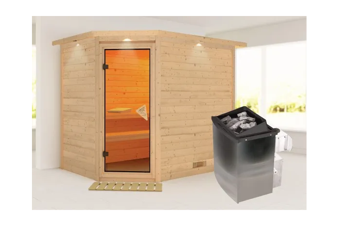 Introductie Tanami Sauna met Dakkraag van FonteynnDe Tanami Sauna met Dakkraag van Fonteyn combineert elegantie en functionaliteit in een prachtig product. Deze sauna, ontworpen met een verfijnde maatvoering, biedt diverse mogelijkheden qua deur- en kacheltype. Bovendien kan de sauna gespiegeld opgebouwd worden, wat zorgt voor een unieke uitstraling. De buitenkant is gemaakt van licht hout, wat de sauna een natuurlijke en warme uitstraling geeft. De afwerking is strak en netjes, wat bijdraagt aan een moderne en verzorgde look. De Tanami Sauna is een typische Finse sauna, gekenmerkt door het gebruik van een oven, al dan niet met een bevochtiger.nnUiterlijk van de Tanami SaunanLuxe en comfort straalt de Tanami Sauna uit. De geïntegreerde verlichting in de dakkraag zorgt voor een sfeervolle ambiance, terwijl de brdeglas deur een moderne touch geeft. Deze sauna is een stijlvolle toevoeging aan uw huis en een plek voor ontspanning. De glazen deur aan de voorzijde heeft een donkere tint en een minimalistisch ontwerp met een enkele zwarte handgreep, wat een mooi contrast biedt tegen het lichte hout.nnFunctionaliteit van de Tanami SaunanUitgerust met drie verschillende banken op verschillende hoogtes, biedt de Tanami Sauna de mogelijkheid om de warmte-intensiteit aan te passen aan uw persoonlijke voorkeur. Daarnaast is er een kachelrek en een Classic hoofdsteun inbegrepen voor extra comfort. De sauna is ontworpen voor uw gemak en biedt een persoonlijke wellness-ervaring in het comfort van uw eigen huis. Naast de sauna staat een moderne kachel, die een gestroomlijnd, zilverkleurig ontwerp heeft met een zwarte bovenkant waar de saunastenen op geplaatst worden. Deze stenen kunnen extra vocht absorberen wanneer er water op wordt gegoten, wat zorgt voor stoomafgifte, een kenmerk van de traditionele Finse sauna.nnGebruiksgemak van de Tanami SaunanMet het oog op gebruiksgemak is de Tanami Sauna ontworpen. De sauna is eenvoudig te installeren en kan gespiegeld opgebouwd worden, zodat u de indeling kunt aanpassen aan uw ruimte. Bovendien is de sauna eenvoudig te onderhouden, zodat u meer tijd kunt besteden aan ontspannen en minder aan schoonmaken. De deur lijkt stevig en zorgt voor een goede afdichting, wat essentieel is voor het behouden van de warmte binnenin.nnEconomisch Slimme KeuzenDe Tanami Sauna is een investering in uw welzijn en gezondheid. Regelmatig gebruik van de sauna kan bijdragen aan een betere bloedsomloop, stressvermindering en algehele ontspanning. Bovendien is de sauna duurzaam gebouwd, wat betekent dat u jarenlang van uw investering kunt genieten.nnZekerheid van de Tanami SaunanMet de Tanami Sauna van Fonteyn kunt u erop vertrouwen dat u een product van hoge kwaliteit in huis haalt. De sauna is gebouwd om lang mee te gaan en blijft jarenlang mooi en functioneel. U kunt dus met een gerust hart investeren in deze sauna, wetende dat u er nog vele jaren plezier van zult hebben.nnShowroom in UddelnFonteyn nodigt u uit om de showroom in Uddel te bezoeken, de grootste sauna (https://www.fonteyn.nl/sauna-s/finse-sauna-s) showroom in Europa. Hier kunt u de Finse Sauna van Fonteyn zelf ervaren en advies krijgen van de intern opgeleide experts. Met een breed assortiment, grote voorraad en snelle levering, kan Fonteyn u de beste service bieden. En als u al zeker bent van uw keuze, kunt u uw sauna direct bestellen via de webshop.n