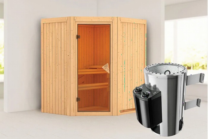 Karibu | Tonja Sauna | Bronzeglas Deur | Kachel 3,6 kW Geïntegreerde Bediening