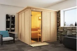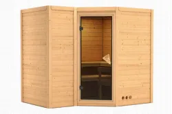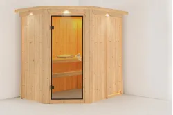 Karibu | Saja Sauna | Helderglas Deur Introductie Saja Sauna van KaribunnOntdek de Saja Sauna van van Fonteyn, een compacte sauna met een hoekmodel vormgeving.€ 2209,99
