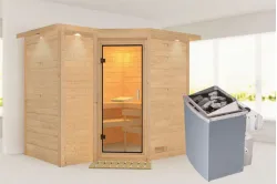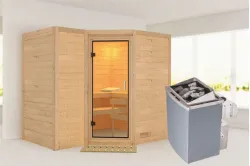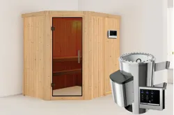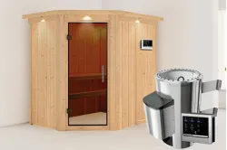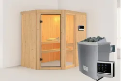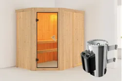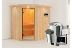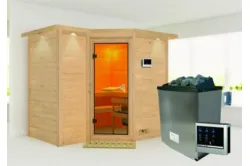Karibu | Saja Sauna | Helderglas Deur | Kachel 3,6 kW Externe Bediening Introductie Saja Sauna van KaribunOntdek de Saja Sauna van Karibu van Fonteyn. Deze compacte sauna met hoekmodel vormgeving is gemaakt van lichtgekleurd hout en heeft een hoogwaardige afwerking.€ 2659,99