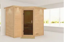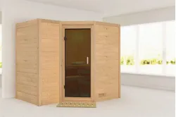 Karibu | Sahib 2 Sauna | Bronzeglas Deur | Kachel 9 kW Externe Bediening Introductie Sahib 2 Sauna van KaribunErvaar de unieke beleving van de Sahib 2 Sauna van Karibu van Fonteyn.€ 3319,99
