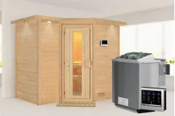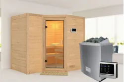 Karibu | Sahib 2 Sauna | Helderglas Deur | Kachel 9 kW Geïntegreerde Bediening Introductie Sahib 2 Sauna van KaribunErvaar de unieke Sahib 2 Sauna van Karibu van Fonteyn.€ 3169,99