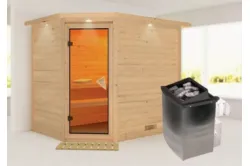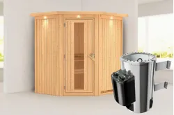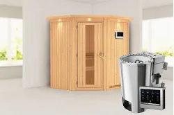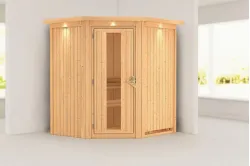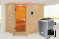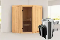 Karibu | Tonja Sauna | Helderglas Deur | Kachel 3,6 kW Externe Bediening Introductie Tonja Sauna KaribunErvaar de unieke beleving van de Tonja Sauna van Fonteyn. Deze compacte sauna heeft een hoekmodel vormgeving en biedt diverse mogelijkheden qua deur- en kacheltype.€ 2499,99