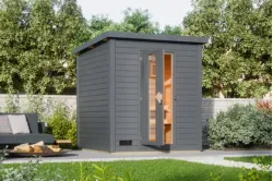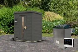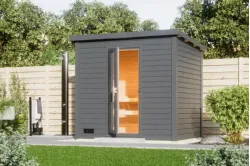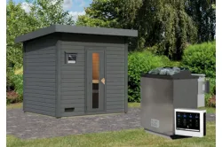 Karibu | Hytti 0 Buitensauna | Terragrijs | Kachel 9 kW Externe Bediening Karibu | Hytti 0 Buitensauna | Terragrijs | Kachel 9 kW Externe Bediening€ 2379,99