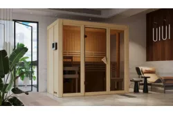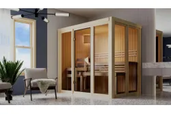Karibu | Gobin Sauna | Helderglas Deur | Kachel 9 kW Geïntegreerde Bediening Introductie Gobin Sauna van FonteynnErvaar de unieke beleving van de Gobin Sauna van Fonteyn.€ 2979,99