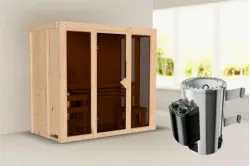 Karibu | Gobin Sauna met Dakkraag | Helderglas Deur | Kachel 9 kW Externe Bediening Introductie: Gobin Sauna met Dakkraag van FonteynnDe Gobin Sauna met Dakkraag van Fonteyn is een uniek product dat een perfecte balans biedt tussen comfort en functionaliteit.€ 3209,99