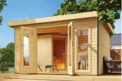 Karibu | Mainburg 3 Sauna Set A Introductie Karibu | Mainburg 3 Sauna Set A van KaribunDe Karibu Mainburg 3 Sauna Set A transformeert elke tuin in een privé wellness resort.€ 6089,99