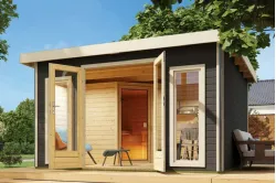 Karibu | Lilja Sauna met Dakkraag | Antracietglas Introductie Lilja Sauna met Dakkraag van KaribunDe Lilja Sauna met Dakkraag van Fonteyn is een compacte Finse sauna met een hoekmodel vormgeving.€ 2389,99