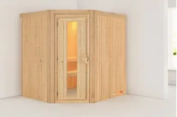 Karibu | Lilja Sauna | Helderglas Deur Introductie Lilja Sauna van FonteynnErvaar de unieke beleving van de Lilja Sauna van Fonteyn. Deze compacte sauna met hoekmodel vormgeving biedt diverse mogelijkheden qua deur- en kacheltype.€ 2309,99