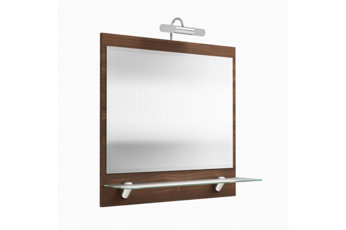Door zijn platte design is deze spiegel een goed alternatief voor de conventionele spiegelkast. Om je spullen kwijt te kunnen is er een mat glazen plank aanwezig. Voor goed licht is er een chroomkleurige ledlamp op de spiegel gemonteerd van 2x 2,5 watt (4000K). Deze spiegel is 70cm breed, 68cm hoog en 22cm diep en verkrijgbaar in het wit, walnoot en antraciet.
