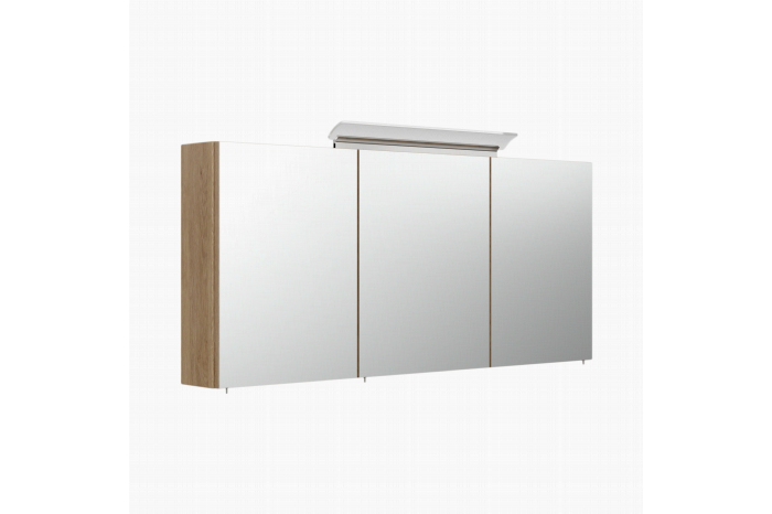 Deze spiegelkast kan door zijn strakke design een plaatsje vinden in elke badkamer. Door zijn 10 watt neutraal witte lamp ben je verzekerd van goed licht! (4000 Kelvin). Achter de deuren, voorzien van soft-close, bevinden zich 6 glazen planken om al je spullen op te bergen, ook bevindt zich hier de aan/uit knop in combinatie met een stopcontact. Deze kast is afgewerkt met een eiken melamine en is 120cm breed, 62,2cm hoog en 17cm diep.