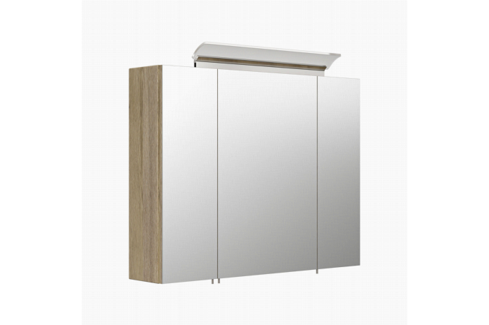 Deze spiegelkast kan door zijn strakke design een plaatsje vinden in elke badkamer. Door zijn 10 watt neutraal witte lamp ben je verzekerd van goed licht! (4000 Kelvin). Achter de deuren, voorzien van soft-close, bevinden zich 4 glazen planken om al je spullen op te bergen, ook bevindt zich hier de aan/uit knop in combinatie met een stopcontact. Deze kast is afgewerkt met een eiken melamine en is 70cm breed, 62cm hoog en 17cm diep.