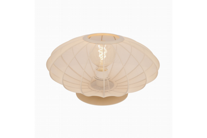 Laat je inspireren door de elegante en moderne tafellamp Corina van Lucide. Deze lampionachtige lamp straalt een subtiele maar krachtige sfeer uit, perfect voor jouw interieur. Het verfijnde gaas materiaal van 100% polyester heeft een zachte beige kleur en wordt gecombineerd met mat metaal in dezelfde beige tint. Het zachte, diffuse licht dat de tafellamp verspreid, zorgt voor een ontspannen en gezellige sfeer. Hiermee is tafellamp Corina perfect voor elke ruimte in je huis, van woonkamer tot slaapkamer.Lichtbron:In de tafellamp gaat een gloeilamp met een grote fitting type E27 van maximaal 40 watt. Deze wordt niet meegeleverd. Om je lamp compleet te maken, vergeet dan niet om er de juiste lichtbron bij aan te schaffen.
