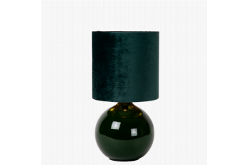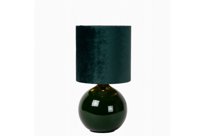 Met tafellamp Esterad van Lucide haal je een stukje retro-chic in huis, die iedere ruimte tot leven brengt. De bolvormige glazen voet geeft de lamp een elegante touch, terwijl de cilinder vorm velvet kap een luxueuze sfeer creëert. De hoge kap is van katoen en heeft een goudkleurige binnenzijde. Dit zorgt voor een warme kleur licht, wanneer Esterad aanstaat. Met een hoogte van 47 cm past deze donkergoene tafellamp perfect op elk dressoir of bijzettafel. Stel je voor hoe deze stijlvolle Esterad tafellamp jouw woonruimte op een unieke manier verlicht en je interieur naar een hoger niveau tilt.Lichtbron:In de lamp gaat een gloeilamp met een kleine fitting type E14, van maximaal 60 watt. Deze wordt niet meegeleverd. Om je lamp compleet te maken, vergeet dan niet om er de juiste lichtbron bij aan te schaffen.