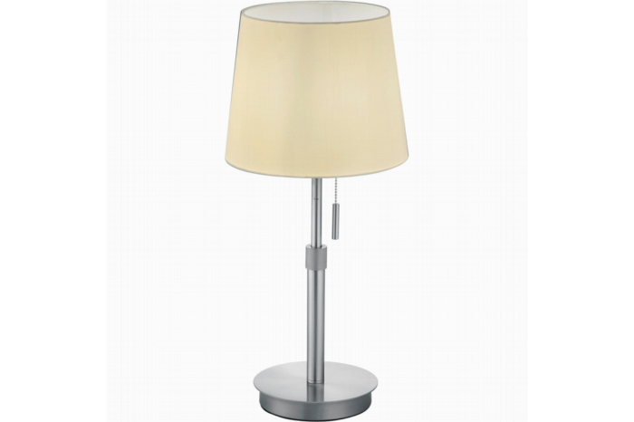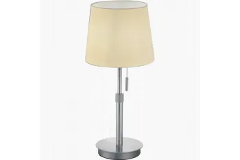 Stijlvolle led tafellamp trion dyonDe LED Tafellamp Trion Dyon combineert elegantie met functionaliteit en is een prachtige aanvulling voor elke ruimte. Met zijn verfijnde mat nikkel afwerking voegt deze lamp een modern tintje toe aan uw interieur. De lamp is vervaardigd uit hoogwaardig aluminium, wat niet alleen zorgt voor een lichtgewicht ontwerp maar ook voor een lange levensduur. De lamp is ontworpen om een warme en uitnodigende sfeer te creëren, perfect voor uw woonkamer, slaapkamer of kantoor.Hoogwaardig design en materialenHet gebruik van aluminium in de constructie van de Trion Dyon tafellamp zorgt voor een robuust en duurzaam product. Aluminium staat bekend om zijn corrosiebestendige eigenschappen, wat betekent dat uw lamp er jarenlang als nieuw uit zal blijven zien. De mat nikkel afwerking geeft de lamp een verfijnde uitstraling, waardoor hij zowel geschikt is voor moderne als klassieke interieurstijlen.Functionele verlichting met e27 fittingDe Trion Dyon tafellamp is voorzien van een E27 fitting, wat betekent dat u een ruime keuze heeft aan geschikte lampen. Of u nu kiest voor een traditionele gloeilamp of een energiezuinige LED-lamp, de Trion Dyon biedt u de flexibiliteit om de lichtopbrengst aan uw wensen aan te passen. Met een maximaal vermogen van 60 watt kunt u genieten van heldere en efficiënte verlichting.Aangepaste verlichting met verstelbare hoogteVoor extra functionaliteit is de Trion Dyon tafellamp in hoogte verstelbaar. Hierdoor kunt u de hoogte aanpassen van 45 cm tot 56 cm, afhankelijk van uw verlichtingsbehoeften en de indeling van uw ruimte. Of u nu behoefte heeft aan directe verlichting voor leeswerk of sfeerverlichting voor een ontspannen avond, deze lamp biedt u de flexibiliteit om de perfecte ambiance te creëren.Gebruiksgemak en installatieDe Trion Dyon is uitgerust met een handige trekschakelaar, waardoor u de lamp eenvoudig kunt in- en uitschakelen. Deze gebruiksvriendelijke bediening maakt de lamp ideaal voor dagelijks gebruik. Let op dat de E27 lamp niet wordt meegeleverd, maar u kunt eenvoudig een bijpassende lamp vinden onderaan deze pagina. Met de Trion Dyon tafellamp haalt u niet alleen stijl maar ook praktische verlichting in huis.
