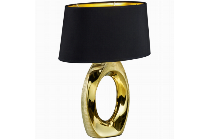 Stijlvolle tafellamp voor elk interieurDe LED Tafellamp Trion Tibos combineert elegantie met functionaliteit en past perfect in zowel moderne als klassieke interieurs. Het mat gouden armatuur voegt een vleugje luxe toe aan elke ruimte, terwijl het keramische materiaal garant staat voor duurzaamheid en een hoogwaardige afwerking. Deze tafellamp is een ideale keuze voor wie op zoek is naar verfijnde tafelverlichting.Hoogwaardig keramiek en textielMet een armatuur gemaakt van hoogwaardig keramiek, biedt de Trion Tibos een solide en duurzame constructie. Het lichtvenster van zwart textiel voegt een extra dimensie van stijl toe door het licht op een zachte en sfeervolle manier te verspreiden. Dit maakt de lamp perfect voor gebruik in woonkamers, slaapkamers of kantoorruimtes waar sfeerlicht gewenst is.Flexibiliteit met de e27 fittingDe Trion Tibos tafellamp is uitgerust met een E27 fitting, wat betekent dat er tal van mogelijkheden zijn om de juiste LED lamp te kiezen die aan jouw wensen voldoet. Of je nu gaat voor warm wit licht of een energiebesparende LED, deze lamp biedt de flexibiliteit om aan te passen aan jouw voorkeuren. Met een maximaal vermogen van 60 watt heeft de lamp voldoende capaciteit om een kamer effectief te verlichten.Gebruiksgemak en functionaliteitDe ingebouwde snoerschakelaar maakt het eenvoudig om de lamp aan en uit te schakelen zonder dat je naar de stekkerdoos hoeft te reiken. Dit verhoogt het gebruiksgemak en maakt de lamp geschikt voor dagelijkse situaties. Dankzij het enkele lichtpunt biedt de lamp gerichte verlichting, ideaal voor leeshoeken of als sfeervolle bijverlichting.Let op: lamp niet inbegrepenHet is belangrijk om te vermelden dat de E27 lamp niet is inbegrepen bij de aankoop van de Trion Tibos tafellamp. Onder aan de pagina vind je een selectie van bijpassende artikelen om jouw lamp compleet te maken. Zo kun je direct de juiste lichtbron kiezen die past bij jouw behoeften en interieur.