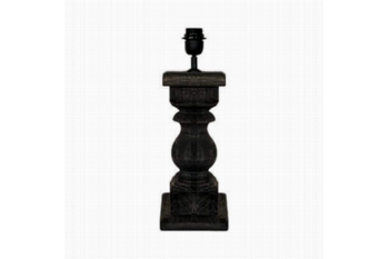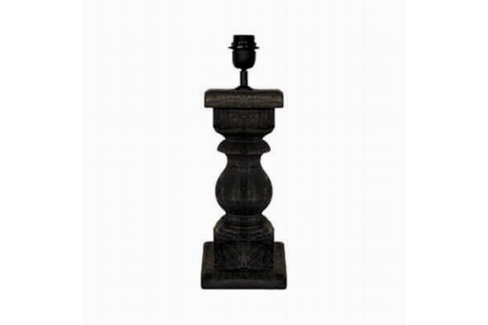 Stoer houten balluster lamp van 45 cm hoog in de nieuwe geblakerde zwart-grijze kleur.