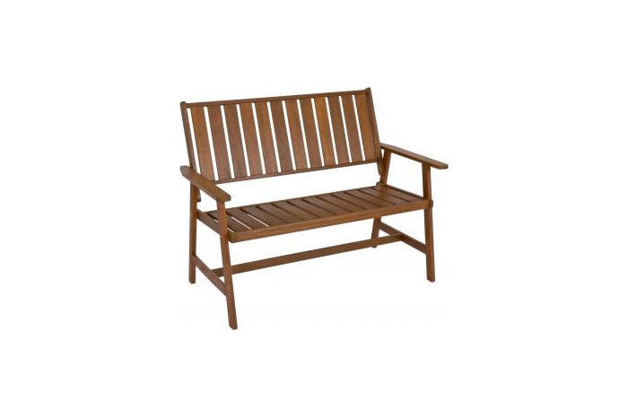 Calgary 2-zits houten tuinbank Specificaties Breedte: 120 cm Diepte: 66 cm Hoogte: 91 cm Materiaal: FSC 100% hardhout Aantal zitplekken: 2...
