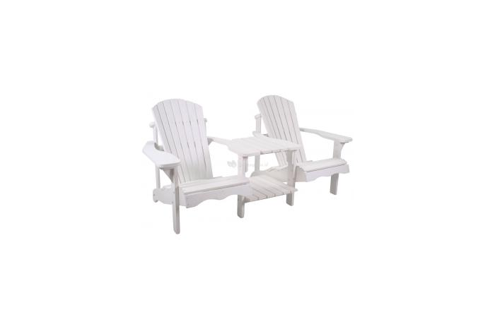 Jumbo Canadian chair tete-a-tete houten tuinbank wit Het comfort van de Jumbo Canadian chair is uitgebreid! De Canadian chair tête-Ã -tête houten tuinbank biedt de welbekende comfortabele zit gecombineerd met een handig tafelblad. V...