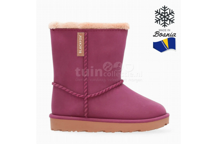 Blackfox Kinderlaars Cheyennetoo Framboos Maat 24/25Met de Cheyennetoo kinder winterlaarzen van Blackfox hebben zelfs de allerkleinsten heerlijk warme voeten tijdens buitenactiviteiten. Deze halfhoge winterlaars is niet alleen comfortabel, maar ook nog eens erg trendy! Hij heeft de looks van leer/suède, maar is door de gebruikte synthetische SEBS rubber waterdicht én flexibel. Daarbij zijn ze ftalaat- en chloorvrij. Voor de voering aan de binnenzijde van de laarzen is er gekozen voor comfortabel polyesterbont, zodat de voeten heerlijk warm blijven, zelfs tijdens een sneeuwwandeling. Deze Cheyennetoo laarzen zijn framboos van kleur en hebben maat 24/25.OnderhoudsadviesOm zo lang mogelijk te genieten van de Cheyennetoo laars is het advies de tuinlaarzen op een koele, droge plek te bewaren. Houd ze uit de buurt van warmtebronnen, direct zonlicht en vocht en stof. Maak deze tuinlaarzen eenvoudig schoon met een vochtige spons.Maatvoering Blackfox LaarsBlackfox kinderlaars Cheyennetoo valt op maat. Twijfel je tussen twee maten? Dan raden we aan de grotere te nemen.Specificaties Maat: 24/25 Kleur: Framboos Materiaal: Synthetisch rubber Model: Halfhoge laars