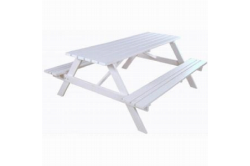 Simone houten picknicktafel wit Simone houten picknicktafel wit Een stevige bank met een frisse uitstraling! De Simone houten picknicktafel in fris wit voegt een moderne look toe aan uw tuin of terras.€ 249,00