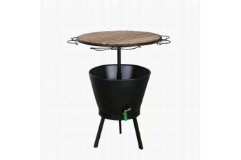 SenS-Line Icebucket Statafel ProvenceEr zijn maar weinig statafels die zo mooi en functioneel zijn als de Provence Icebucket tafel van SenS-Line! Deze tafel en icebucket in één bestaat uit een metalen ijsemmer en een houten tafelblad, inclusief glazenhouders. Vul de ijsemmer met ijs en drankjes en hang de glazen aan de houders. Deze tafel is ideaal voor een tuinfeest! Hij bestaat uit een zwart, gepoedercoat metaal en een houten blad, dat eenvoudig omhoog getrokken kan worden. Aan de onderzijde van de emmer zit een kraantje, om de emmer leeg te laten lopen als het ijs gesmolten is. OnderhoudOm roesten te voorkomen en de levensduur te verlengen, kun je dit artikel het beste na gebruik droog op bergen.Specificaties Hoogte: 95cm Diameter: 60cm Kleur: Zwart en bruin Materiaal: Gepoedercoat metaal en hout Levering: Bouwpakket - deels voorgemonteerd