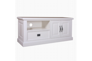 Compact TV-dressoir van alle gemakken voorzien, open vak, lade en 2 deuren.U heeft de mogelijkheid om het tv-dressoir met een antiek finish af te laten werken, de randen worden licht opgeschuurd en bewerkt zodat er een antiek uitstraling ontstaat.Stel u eigen tv-dressoir samen door u eigen kleur te kiezen en het dressoir te voorzien van het beslag naar u keuze.