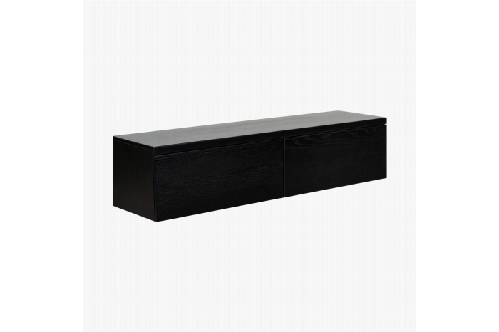 TV-meubel Chester is een stijlvol statement en pure luxe voor elk interieur! Het zwevende design geeft je ruimte een eigentijdse en minimalistische uitstraling. Het diepe, mysterieuze zwart straalt moderne elegantie uit en maakt dit meubel een echte blikvanger. Dit unieke wandmeubel is vervaardigd uit massief eikenhout met een eiken fineer in een prachtige zwarte kleur. Ervaar de topkwaliteit en duurzaamheid van dit meesterwerk, ontworpen om jarenlang mee te gaan. TV-meubel Chester past perfect in diverse woonstijlen.