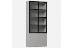 Basic - VitrinekastVitrinekast Basic van vtwonen heeft een strak en eigentijds design en is opvallend hoog. De greeploze kast heeft een romp in lichtgrijze mistkleur en vitrinedeuren met zwart metalen frames.