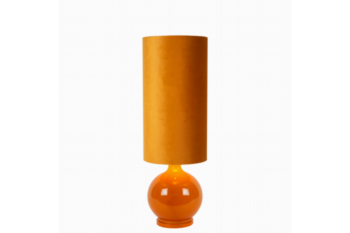 Met vloerlamp Esterad van Lucide haal je een stukje retro-chic in huis, die iedere ruimte tot leven brengt. De bolvormige glazen voet geeft de lamp een elegante touch, terwijl de cilinder vorm velvet kap een luxueuze sfeer creëert. De hoge kap is van katoen en heeft een goudkleurige binnenzijde. Dit zorgt voor een warme kleur licht, wanneer Esterad aanstaat. Met een hoogte van maar liefst 100 cm is deze okergele vloerlamp een echte eyecatcher. Stel je voor hoe deze stijlvolle Esterad vloerlamp jouw woonruimte op een unieke manier verlicht en je interieur naar een hoger niveau tilt.Lichtbron:In de lamp gaat een gloeilamp met een grote fitting type E27, van maximaal 60 watt. Deze wordt niet meegeleverd. Om je lamp compleet te maken, vergeet dan niet om er de juiste lichtbron bij aan te schaffen.