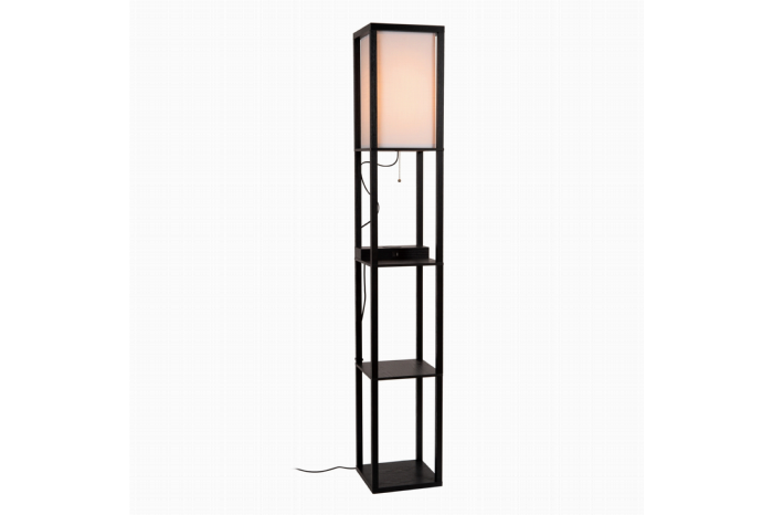 Vloerlamp Menno van het merk Lucide is een echte eyecatcher. Met zijn strakke en unieke ontwerp met bovenaan een ingebouwde kap, past deze lamp perfect in een moderne inrichting. De vierkante lamp heeft een MDF frame met plankjes met een zwarte afwerking. Behalve fijne sfeerverlichting biedt Menno ook plek voor bijvoorbeeld een plant, of een decoratief accessoire. Er is zelfs een ingebouwd oplaadplatform voor het draadloos opladen van smart devices. Bovenaan zit een kap van naturel kleur katoen van 38 cm hoog. Met vloerlamp Menno voeg je een vleugje unieke elegantie toe aan jouw interieur.Lichtbron:In de lamp gaat een lichtbron met een grote fitting type E27 van maximaal 60 watt, deze wordt niet meegeleverd. Om je lamp compleet te maken, vergeet dan niet om er de juiste lichtbron bij te aan te schaffen.