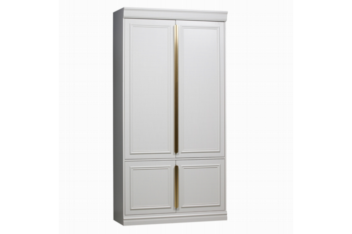 De Wandkast Organize heeft een eigentijds design met klassieke elementen en past perfect in een trendy luxe interieur. De deuren zijn voorzien van mooie sierlijsten en lange handgrepen met een gematteerde antique brass afwerking. Deze kast is gemaakt van massief grenenhout in de hippe kleur greige (beige/grijs), waardoor het gemakkelijk te combineren is met verschillende kleuren en stijlen. Het is een product van het Nederlandse merk WOOOD.