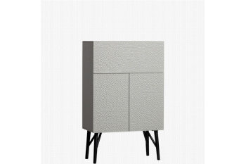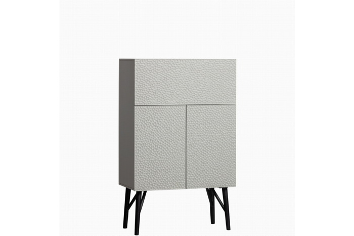 Met wandkast Carved van interieurmerk WOOOD wordt het opbergen van je bar items echt een feestje. De kastdeuren hebben een opvallende Oosterse houtbewerking die voor een organisch patroon zorgt. De body van deze drankkast is gemaakt van grenenhout en de deuren zijn van duurzaam mangohout. Het geheel is afgewerkt in een mistgrijze kleur met als opvallend accent de zwarte poten eronder. Met wandkast Carved haal je een sfeervolle eyecatcher in huis.Indeling:De Carved wandkast heeft bovenin een royaal vak met klep met genoeg ruimte voor jouw mooiste glaswerk. Achter de onderste twee deuren bevinden zich nog twee ruime opbergvakken. De planken hebben een maximale draagkracht van 15 kg.Levering & montage:Wandkast Carved wordt in ÉÉn pakket geleverd en is eigenhandig te monteren aan de hand van de bijgeleverde montagehandleiding. Plaats voor het beschermen van harde vloeren viltglijders onder de poten. Het is aangeraden om de valpreventie te bevestigen, om kantelen te voorkomen.