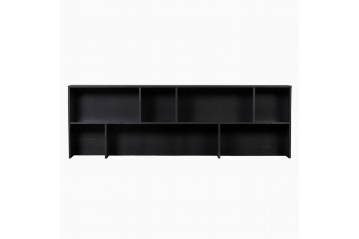 De New Gravure opzetkast is een unieke aanvulling op het New Gravure dressoir van interieurmerk WOOOD. De opzetkast is uitgevoerd in grenenhout en afgewerkt met een diepzwarte beits. Het is een open kast met plek voor opbergen en etaleren. Opzetkast New Gravure in combinatie met het dressoir maakt samen een ruime wandkast met een afmeting van maar liefst 200x46 cm en 150 cm hoog.Indeling:De breedte van de opzetkast is gelijk aan het New Gravure dressoir, namelijk 200 cm. De diepte is minder dan het dressoir, namelijk 44 cm. De bovenste vakken hebben verschillende breedtes van 31 en 60 cm. De onderste vakken hebben breedtes van 31 cm, 100 cm en 62 cm. Alle vakken zijn 31 cm hoog.Levering & montage:De Gravure opzetkast wordt als pakket geleverd en moet nog gemonteerd worden. Vervolgens bevestig je de opzetkast eenvoudig op het dressoir. Voor extra stevigheid adviseren we om de kast aan een wand te borgen. Plaats voor het beschermen van harde vloeren viltglijders onder de poten van je New Gravure kast.