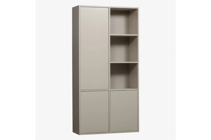Wandkast Meggy van woonmerk WOOOD heeft een stijlvolle uitstraling en royale opbergmogelijkheid. Aan de rechterzijde zijn drie open vakken, ideaal om decoratieve items of je favoriete boeken te etaleren. De linkerzijde is voorzien van een lange kast met deur, waarin je spullen uit het zicht kunt opbergen. Perfect voor wie graag een opgeruimd, stijlvol Én persoonlijk interieur wil creëren. Dit prachtige wandmeubel is gemaakt van FSC-gecertificeerd grenenhout en heeft een afwerking in een moderne greige tint.Indeling:Wandkast Meggy biedt een combinatie van open en dichte vakken, perfect voor etaleren en opbergen. De dichte vakken hebben er een deur voor, deze zijn greeploos en voorzien van een modern push-to-open systeem.Levering & montage:Het Meggy wandmeubel wordt in 3 pakketten geleverd en moet nog gemonteerd worden. Het monteren doe je met twee personen en deze kast wordt liggend gemonteerd. Houd rekening met extra hoogte voor wanneer je de kast omhoog gaat kantelen. Zorg voor het juiste gereedschap en volg vervolgens stap voor stap de gebruiksaanwijzing. Wil je nog meer uit je interieur halen? Combineer dit wandmeubel met andere Meggy kasten en stel zo jouw ideale kastenwand samen.
